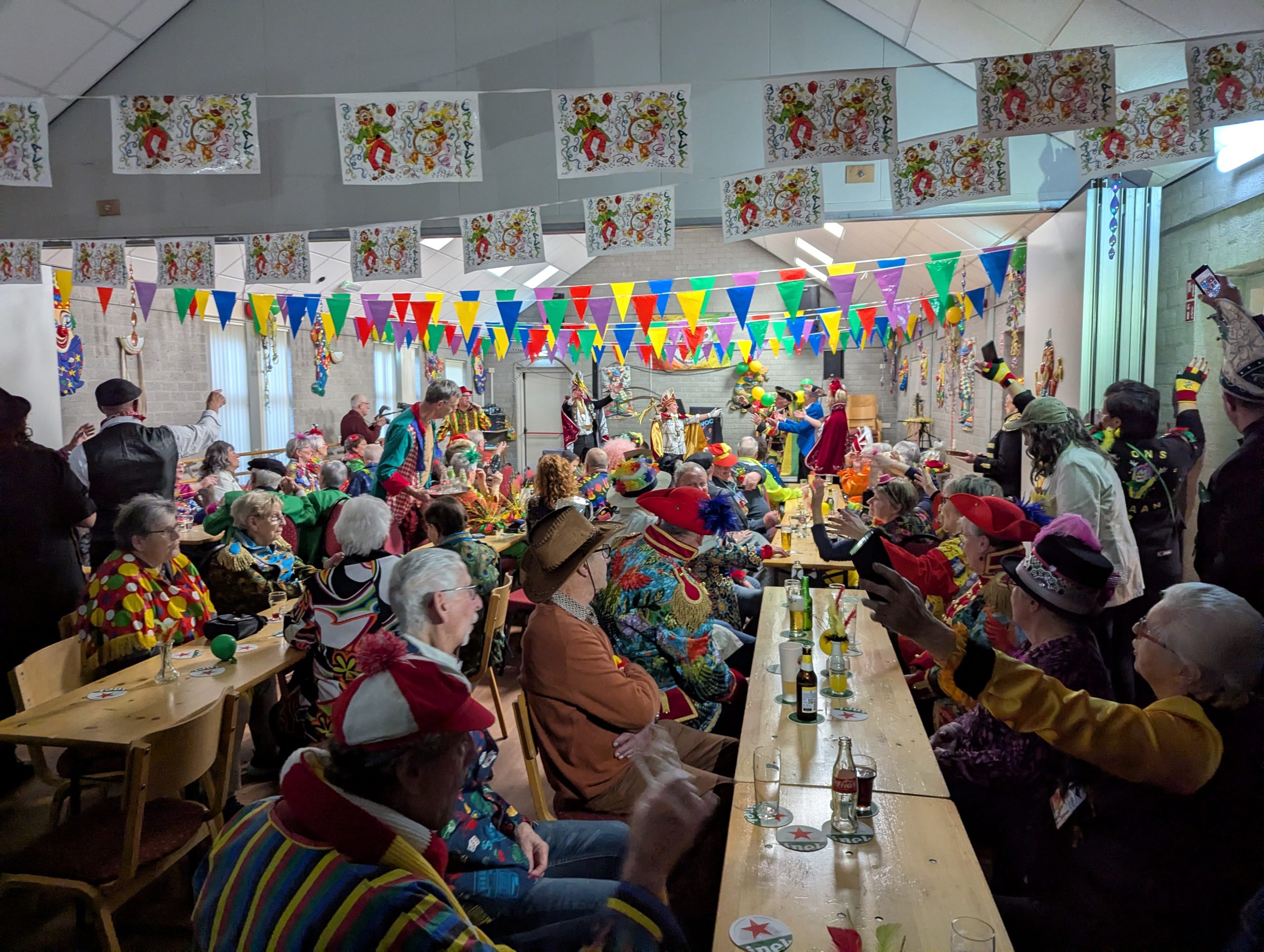 Langzaam druppelen de senioren carnavalsvierders binnen in de carnavalszaal van Joffershof en het wordt gezellig druk. De sfeer zit er meteen goed in met de muziek van “G’woon Jan” uit Rijkevoort.
